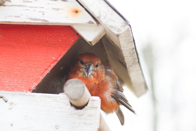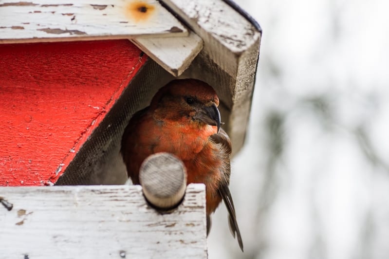 Korsnäbb vid fågelbordet
